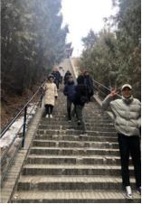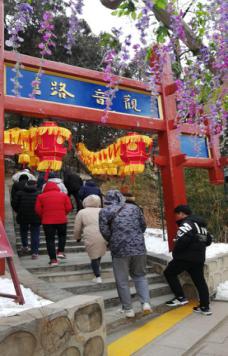 第二天早上9:00點,我們團體到達紅螺寺景區(qū),位于北京市懷柔區(qū)城北5公里的紅螺山南麓,距北京市區(qū)55公里,景區(qū)總面積800公頃,國家AAAA級旅游區(qū)。始建于東晉咸康四年(公元338)年,原名“大明寺”(明正統(tǒng)年間易名“護國資福禪寺”,因紅螺仙女的美妙的傳說,俗稱“紅螺寺”)。紅螺寺坐北朝南,依山勢而建,布局嚴謹,氣勢雄偉。現(xiàn)在時節(jié)三九,北方冰天雪地,此時攀登由緩緩的山勢而上,身體慢慢散發(fā)熱量,爬到山頂已經(jīng)是大汗淋漓,站在頂端俯視村莊,遠眺雁西湖畔、懷柔水庫,高矮錯落的房子......心境舒爽。