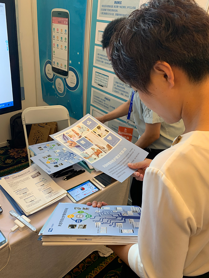 此次大會(huì)上,天坦軟件成為大會(huì)的亮點(diǎn),《天坦可視化護(hù)理信息系統(tǒng)》是天坦護(hù)理信息系統(tǒng)的升級(jí)版本,她解決護(hù)士們最頭疼的人工錄入問(wèn)題,去除了繁瑣手動(dòng)書(shū)寫(xiě)、檢查核對(duì)的工作狀況。只需在每個(gè)病區(qū)的護(hù)士站安裝一臺(tái)綜合護(hù)理信息的電子化、智能化信息交互大屏,所需要的監(jiān)測(cè)病床內(nèi)容一目了然,實(shí)時(shí)掌控病人的治療情況,是一款貼心又安心的實(shí)用型護(hù)理系統(tǒng)軟件。另外,天坦工程師還為到場(chǎng)的老師和領(lǐng)導(dǎo)講解了天坦醫(yī)療信息化系列解決方案》,邊演示邊講解,獲得了老師和領(lǐng)導(dǎo)們的掌聲。