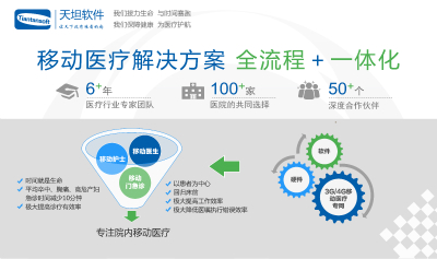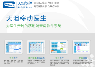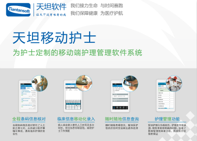 除了卒中綠色通道之外,天坦軟件在大會(huì)上還展出了移動(dòng)醫(yī)護(hù)產(chǎn)品,主要涉及天坦移動(dòng)醫(yī)生和天坦移動(dòng)護(hù)士。天坦移動(dòng)醫(yī)生是專門為醫(yī)生定制的移動(dòng)查房系統(tǒng),具有智能查房,協(xié)同醫(yī)療、智能輔助等特點(diǎn),是隨時(shí)隨地的病歷夾;天坦移動(dòng)護(hù)士是專門為護(hù)士定制的移動(dòng)護(hù)理系統(tǒng),支持全程條碼信息核對(duì),臨床信息移動(dòng)化錄入,隨時(shí)隨地信息查詢以及護(hù)理管理等。