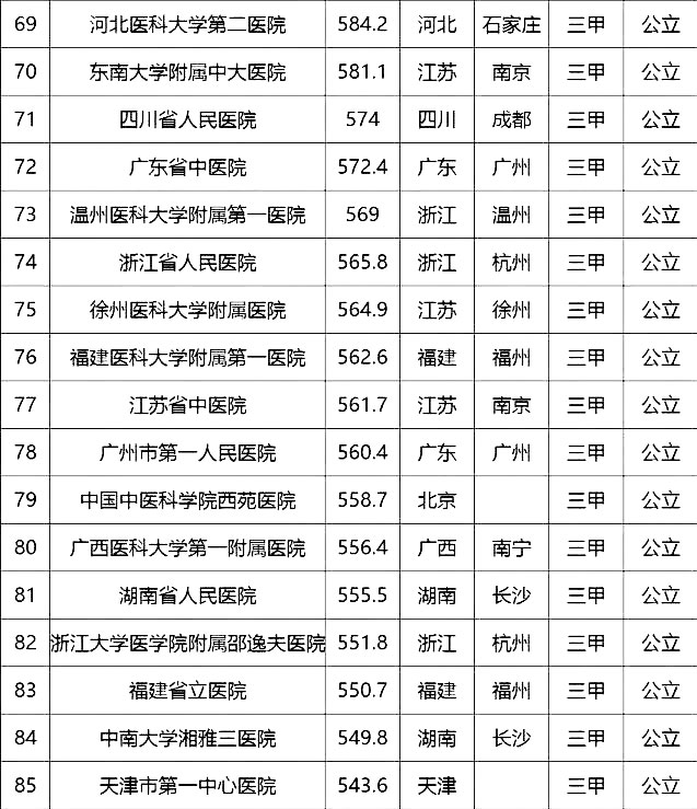 “100強(qiáng)”榜單中,入圍最多的三個(gè)省市分別是北京(16家醫(yī)院)、上海(13家醫(yī)院)、廣東(9家)。“100強(qiáng)”共覆蓋32個(gè)城市,包括4個(gè)直轄市(36家醫(yī)院)、23個(gè)省會(huì)城市(59家醫(yī)院)、5個(gè)地級(jí)市(5家醫(yī)院)。總體看,城市的醫(yī)院平均得分和上榜機(jī)構(gòu)數(shù)有一定的相關(guān)性,上榜機(jī)構(gòu)數(shù)多的城市一般得分均值較高,說(shuō)明這些城市醫(yī)院整體實(shí)力較高。