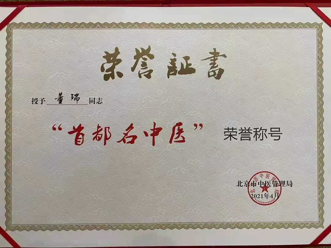 2021年4月30日,“貫徹條例、傳承創(chuàng)新”,《北京中醫(yī)藥條例》實(shí)施宣傳貫徹暨培訓(xùn)活動(dòng)在北京會(huì)議中心隆重舉行,國(guó)家中醫(yī)藥管理局局長(zhǎng)于文明,北京市人民政府副市長(zhǎng)盧彥,北京市政協(xié)副主席、衛(wèi)健委主任于魯明,北京市中醫(yī)局局長(zhǎng)屠志濤等領(lǐng)導(dǎo)出席。此次會(huì)議旨在宣傳貫徹《北京中醫(yī)藥條例》正式實(shí)施,同時(shí)大力表彰北京名中醫(yī),促進(jìn)中醫(yī)藥事業(yè)依法發(fā)展。會(huì)上全國(guó)政協(xié)委員、享受?chē)?guó)務(wù)院特殊津貼專(zhuān)家、博士生導(dǎo)師、中醫(yī)主任醫(yī)師、北京康益德中西醫(yī)結(jié)合肺科醫(yī)院董瑞院長(zhǎng)與中國(guó)科學(xué)院仝小林院士、北京中醫(yī)醫(yī)院劉清泉院長(zhǎng)等100位首都中醫(yī)藥系統(tǒng)著名專(zhuān)家被北京市中醫(yī)管理局授予“首都名中醫(yī)”榮譽(yù)稱(chēng)號(hào),國(guó)家中醫(yī)藥管理局于文明局長(zhǎng)親自為董瑞院長(zhǎng)頒發(fā)了“首都名中醫(yī)”證書(shū)。